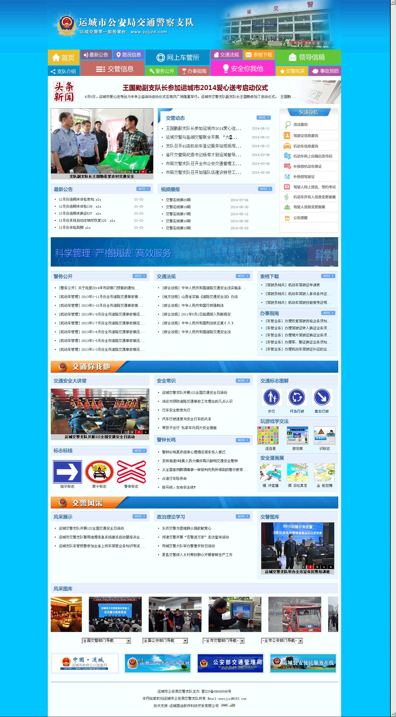 經(jīng)過(guò)2個(gè)月的緊張?jiān)O(shè)計(jì),調(diào)整修改,順利完成運(yùn)城市公安局交通警察支隊(duì)新版內(nèi)外網(wǎng)的更新。